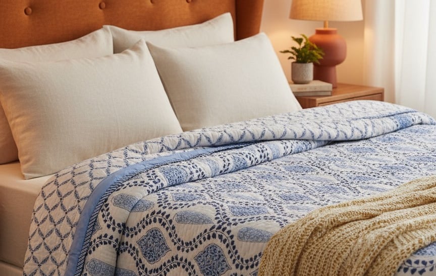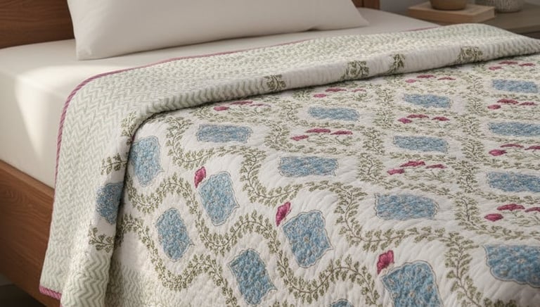 Elevate your living environment with our breathable and comfortable pure cotton quilts, available in a variety of chic designs.